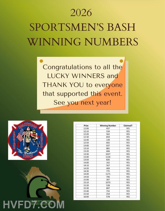| Congratulations to all the winners from our Annual Sportsmen's Bash. All prizes have been claimed. |